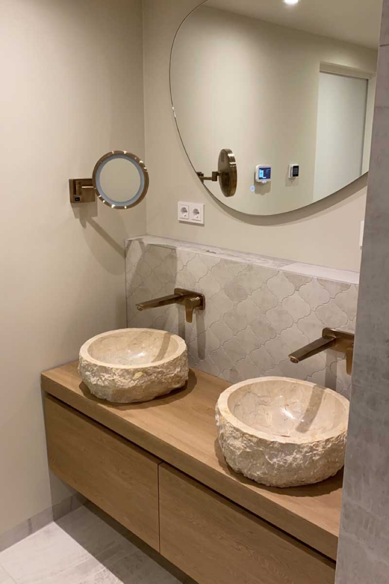 A Kroon Installatietechniek heeft in deze badkamer nieuwe riolering, nieuw leidingwerk en de montage van de kranen verzorgd, een flinke klus met een prachtig eindresultaat!